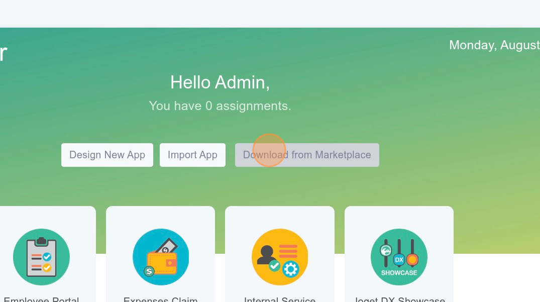El Mercado Joget proporciona una forma sencilla de integrar nuevas aplicaciones en tu instancia de Joget, expandiendo tus herramientas. Puedes acceder al Mercado Joget dentro del ámbito del Centro de Aplicaciones seleccionando Descargar desde el Mercado.